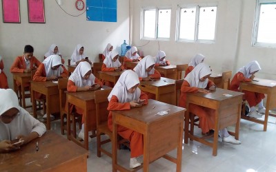 Siswa-siswa kelas XII tahun pelajaran 2019/2020 melaksanakan try out dan ujian menggunakan android