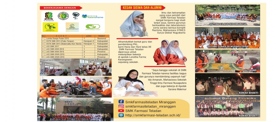 SMK Farmasi Teladan berdiri sejak 2012, Alhamdulillah sudah meluluskan 10x dengan kelulusan 100%. Sekolah swasta yg mengedepankan ilmu dan agama sesuai dengan visi k